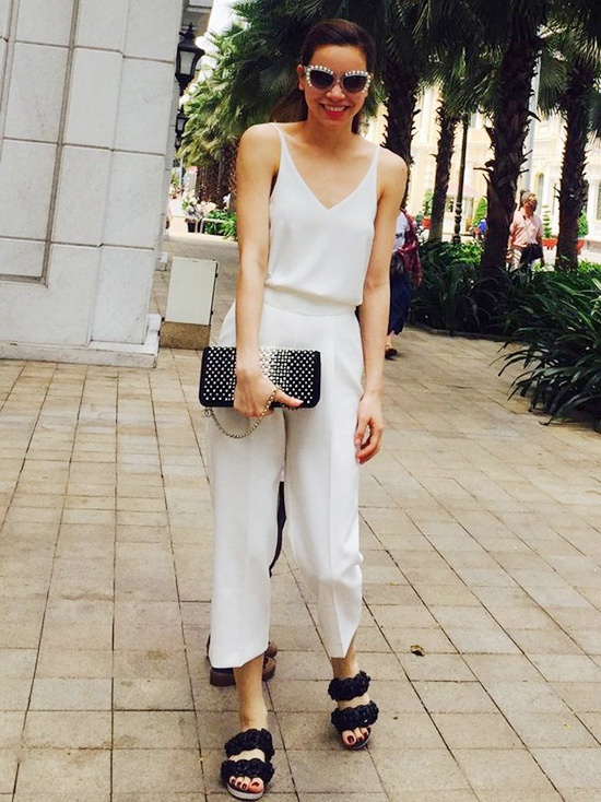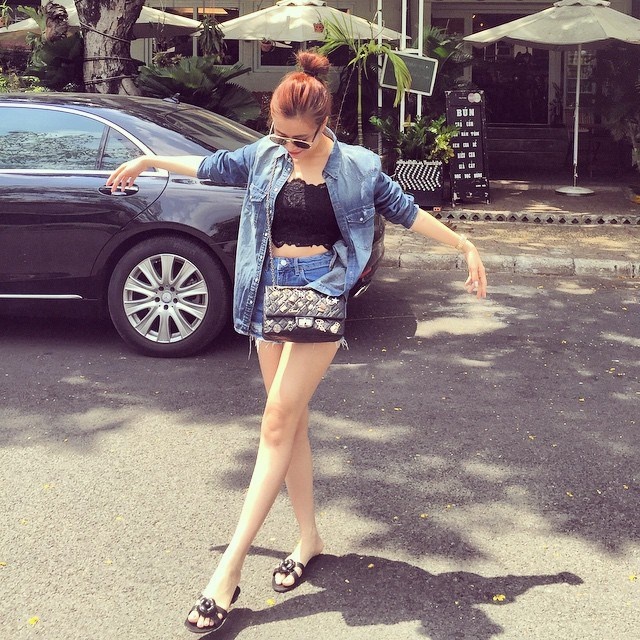 | Hà Hồ trẻ trung và không kém phần đáng yêu với mẫu dép bệt quai ngang. |