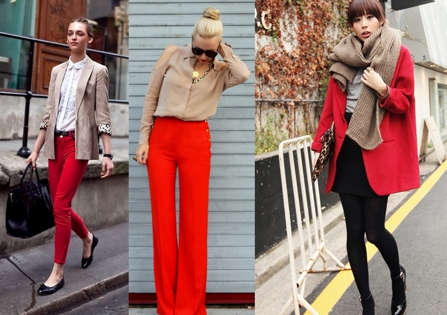 | Xám và đỏ tươi: Màu đỏ tươi giúp cân bằng vẻ ảm đạm của màu xám, còn màu xám giúp tiết chế phần nào sự nổi bật của sắc đỏ. Hai màu sắc là cặp đôi bù trừ, hỗ trợ đắc ý cho nhau trong mọi kiểu trang phục. |