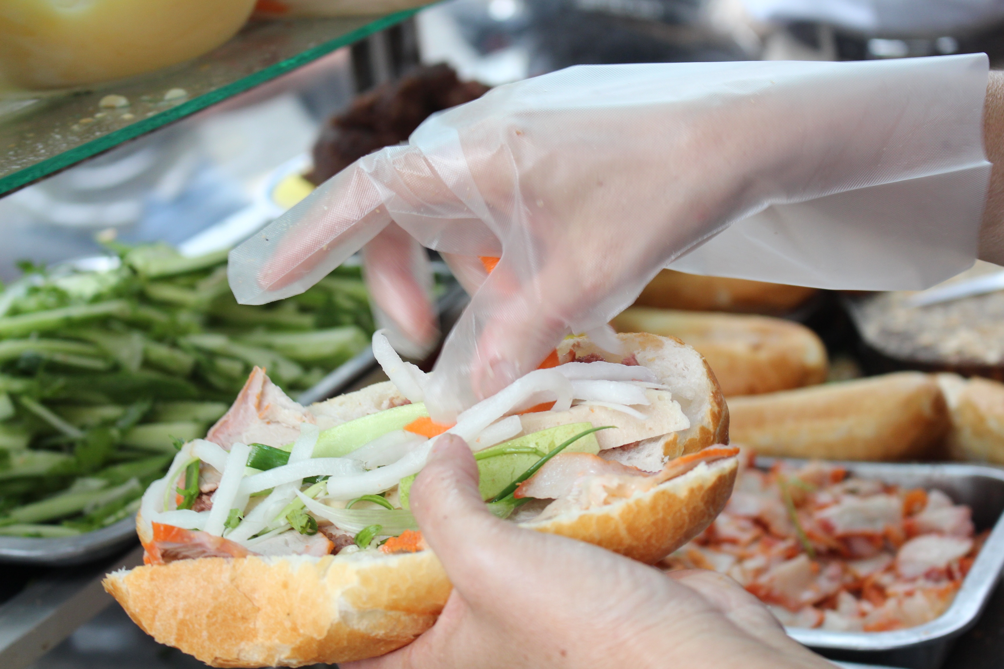 | Kích thước vừa, giá tương đối, nguyên liệu được chế biến theo công thức riêng là những bí quyết giúp xe bánh mì hơn 80 năm tuổi trên đường Huỳnh Khương Ninh, quận 1, TP HCM trở thành một trong những món "một tuần không ăn sẽ thấy thiếu" của nhiều thực khách. Ảnh: Huỳnh Hằng. |