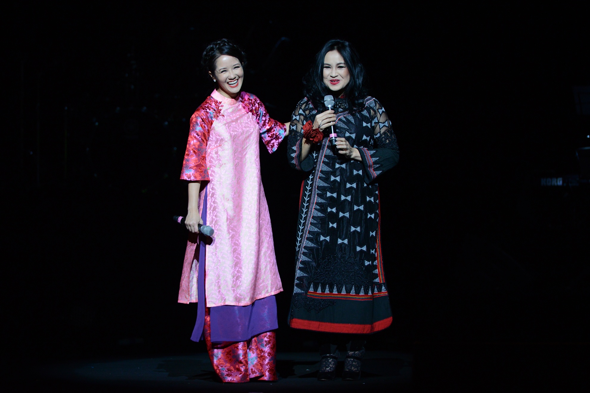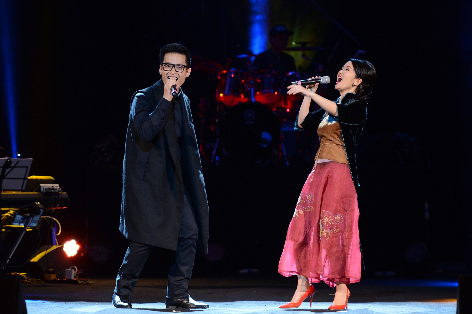 | Một hình ảnh ấn tượng khác của đêm diễn chính là màn song ca ấn tượng của Hồng Nhung và đàn em Hà Anh Tuấn. Trên sân khấu, 2 ca sĩ kết hợp nhuần nhuyễn và cùng thăng hoa khiến khán giả thích thú. |