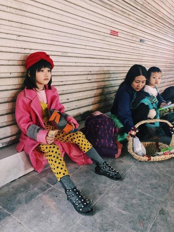 | Cuối tháng 3, loạt ảnh bé Hoàng Anh mặc 2,3 lớp quần áo sặc sỡ được phối layer, ngồi bán hàng cùng mẹ trên vỉa hè đường phố Hà Nội được nhiều diễn đàn chia sẻ. Bên cạnh những lời khen ngợi gửi đến cô bé 6 tuổi trên mạng, nhiều người tìm tới nơi em sinh sống cùng mẹ và 4 anh chị để tặng quà, giúp đỡ tiền thuê nhà. Một số tuyên bố hỗ trợ cô bé đi học lớp người mẫu để phát triển tài năng. Tại Tuần lễ Thời trang Quốc tế Việt Nam diễn ra cuối tháng 10 vừa qua, Hoàng Anh được trình diễn trong bộ sưu tập của nhà thiết kế Thảo Nguyễn. Trước đó, cô bé được học catwalk, tạo dáng để trình diễn trên sân khấu. Ảnh: Huu Anh Zoner. |