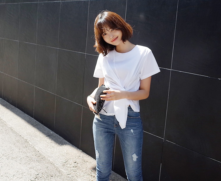 | Hoặc bạn có thể chọn các mẫu áo thun đính ngọc trai cũng rất trẻ trung và đáng yêu trong dịp hè. |