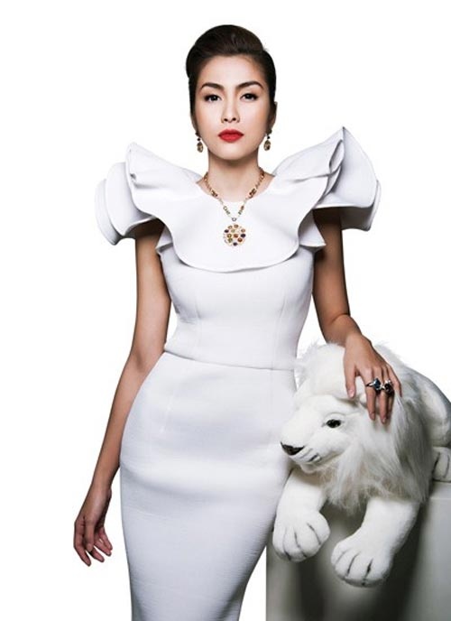 Từ khi yên bề gia thất, Ngọc nữ Vbiz ngày càng quyến rũ và sang trọng hơn. Những kiểu tóc tết cẩn thận vì thế càng làm tăng vẻ quý phái.