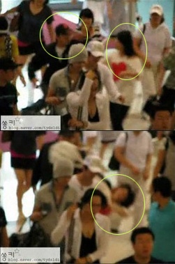 Khi TVXQ bước vào sảnh sân bay, một loạt người hâm mộ lao về phía các chàng trai. Trong đó, không may cho một fan nữ bị người quản lý đẩy trúng khiến cô ngã lăn xuống sàn.