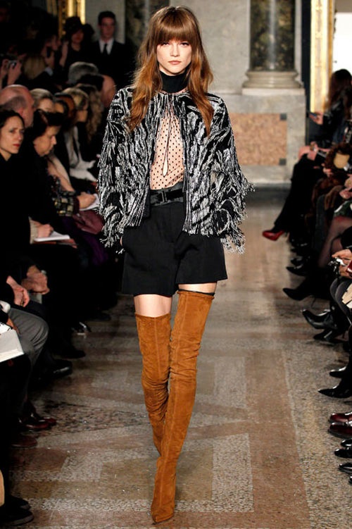 Loại bốt đùi này tương đối khó đi và khó kết hợp. Bạn nên kết hợp quần, váy rất ngắn sao cho khoảng hở mời gọi giữa bốt và váy vẫn có cơ hội lộ diện.