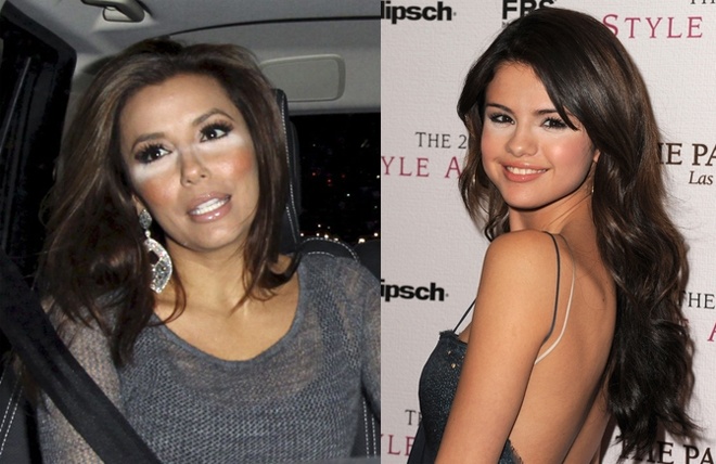 Chọn kem che khuyết điểm nhạt hơn so với màu da vùng mắt là cách nhanh nhất để các điểm xấu cần che giấu ở khu vực này lộ rõ hơn dưới ánh sáng tự nhiên như Selena Gomez, Eva Longoria … từng mắc phải. Thay vào đó, hãy chắn chắn kem che khuyết điểm vùng mắt của bạn chỉ sáng hơn 1 tone so với màu phấn nền.