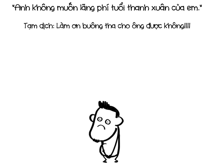 | "Anh không muốn lãng phí tuổi thanh xuân của em" là một trong những cách giúp đấng mày râu thể hiện sự ga lăng khi muốn kết thúc cuộc tình. |