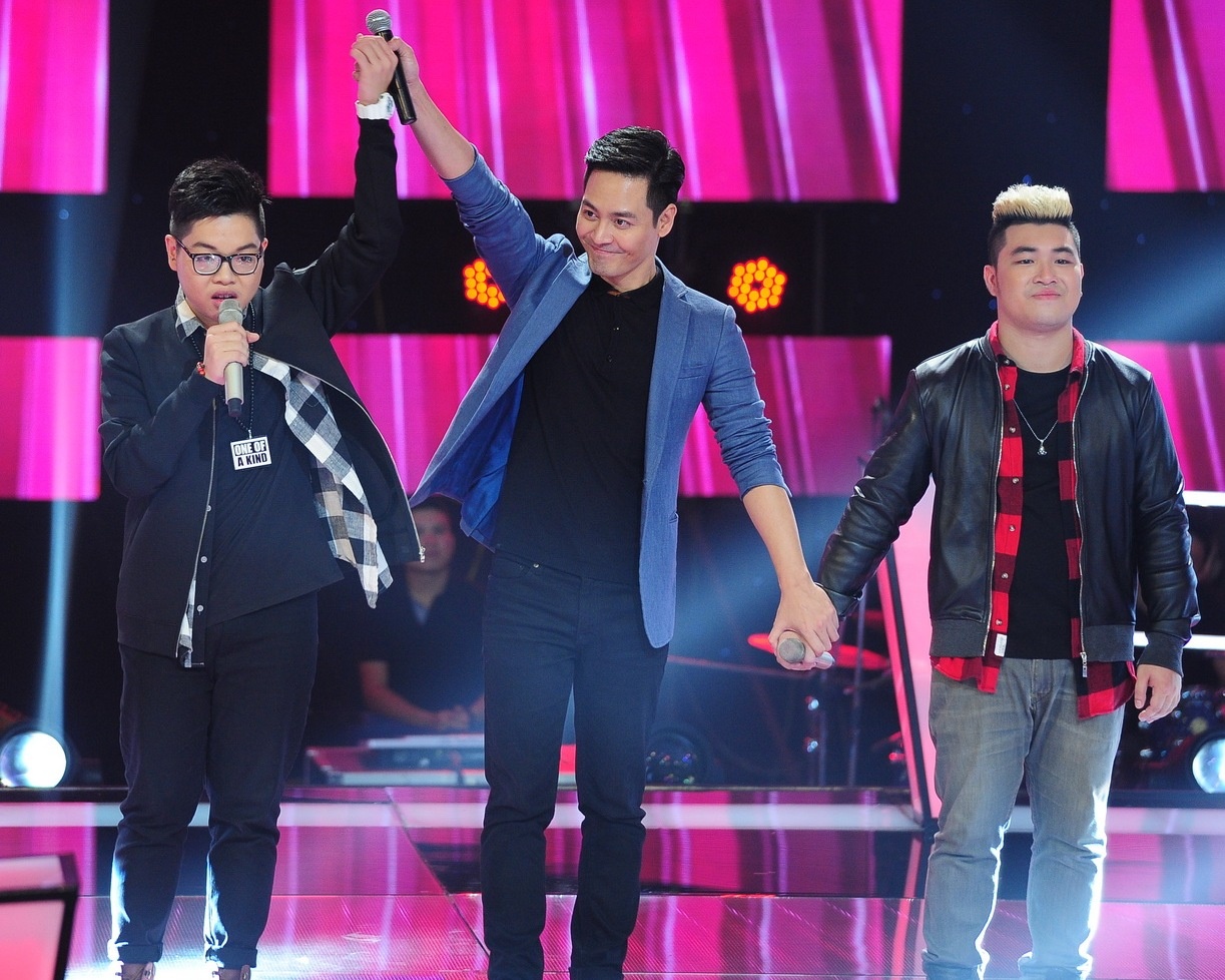 | Tiết mục của Đức Phúc (trái) và Hoàng Phong trong ca khúc Try là minh chứng cụ thể nhất cho tài năng huấn luyện của "họa mi tóc nâu" cũng như sự cố gắng của 2 giọng ca trẻ. Nếu như ở vòng Giấu mặt, chàng trai 18 tuổi gặp áp lực khi trình diễn trước đám đông thì nay, phần nào khắc phục được điểm yếu. Hoàng Phong khi được chọn về team không quá nổi trội, nhưng trong thời gian ngắn, anh khiến mọi người phải công nhận giọng hát và khả năng trình diễn tiến bộ rõ rệt. Sự hòa quyện và chủ động nâng đỡ của họ mang đến tiết mục bùng nổ. |