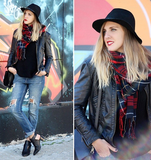 Năm nay, mốt kẻ carô đã quay trở lại nên việc tái sử dụng lại những mốt khăn dạ kẻ của 5 năm về trước hoặc sắm ngay cho mình một chiếc khăn mới sẽ là gợi ý không thể bỏ qua. Khăn kẻ hợp với phong cách khỏe khoắn, năng động, đẹp mắt với áo da, áo khoác military hay đơn giản hơn là những chiếc áo len dáng dài.