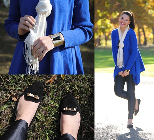 Chiếc khăn màu trắng giúp bạn khoe vẻ duyên dáng trong ngày chớm lạnh.