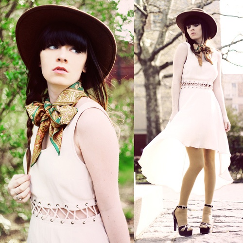 Khăn lựa thắt như chiếc nơ có thể sử dụng khi dự tiệc.
