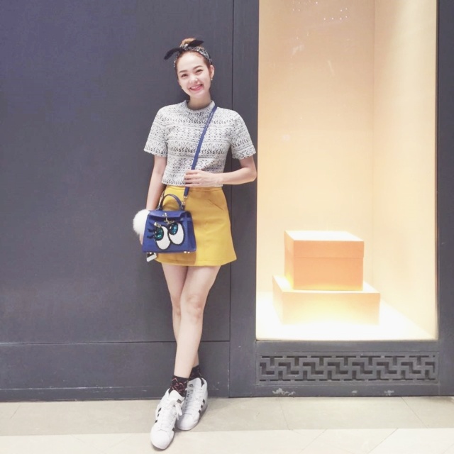 6. Váy ngắn: Minh Hằng khoe vẻ trẻ trung với kiểu váy ngắn chữ A và áo lửng khi xuống phố.