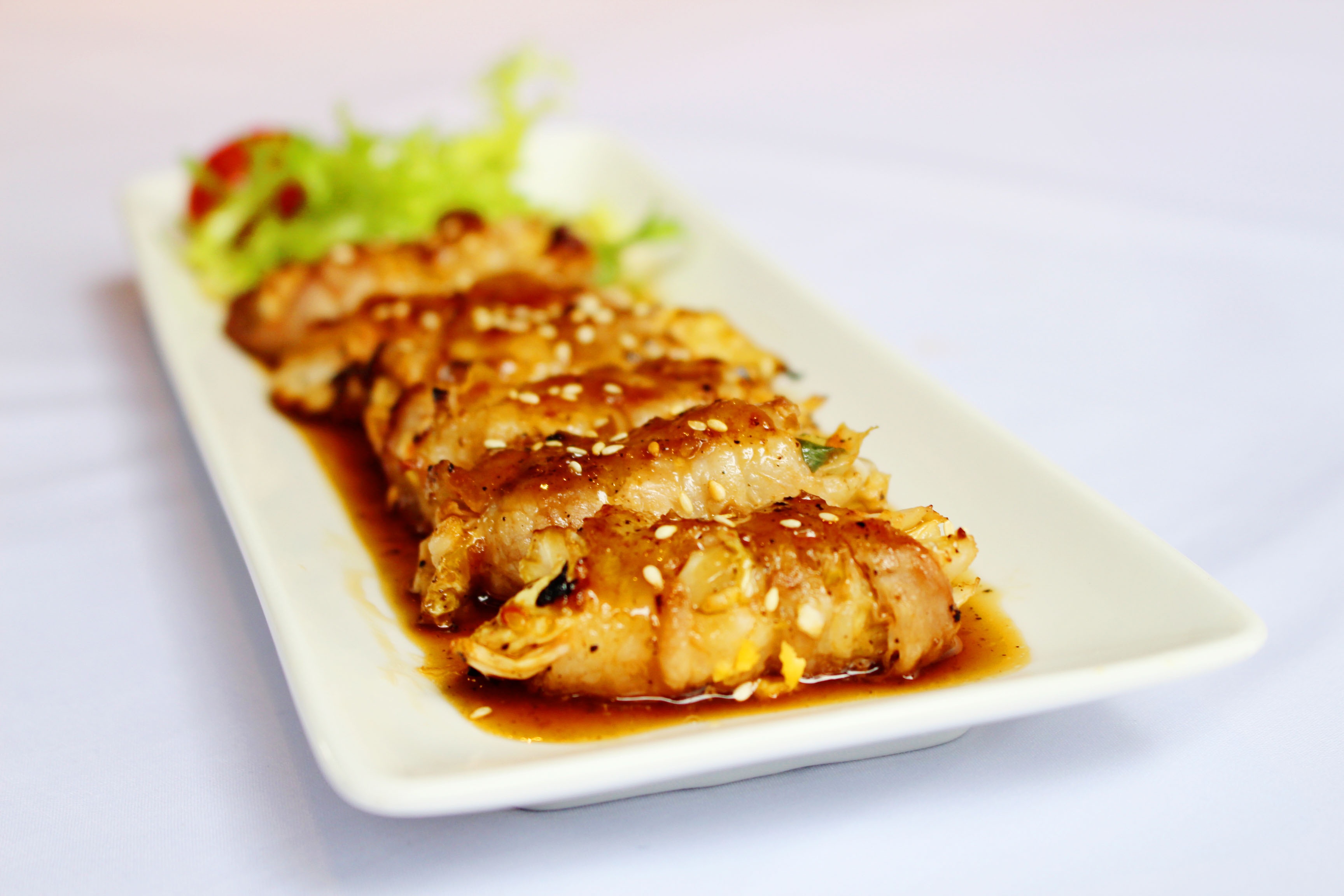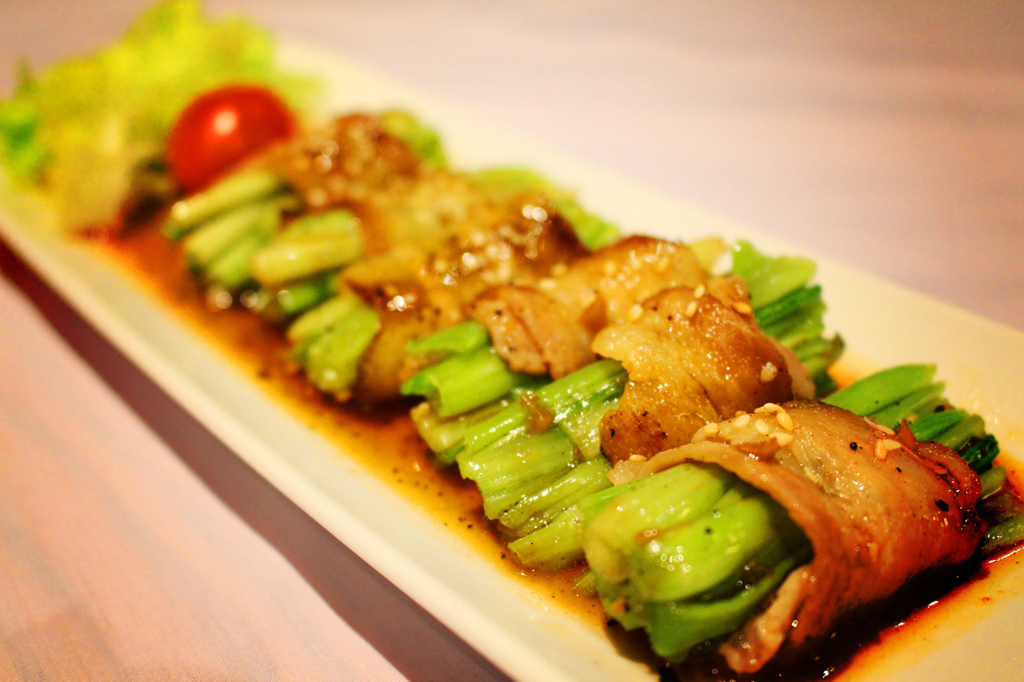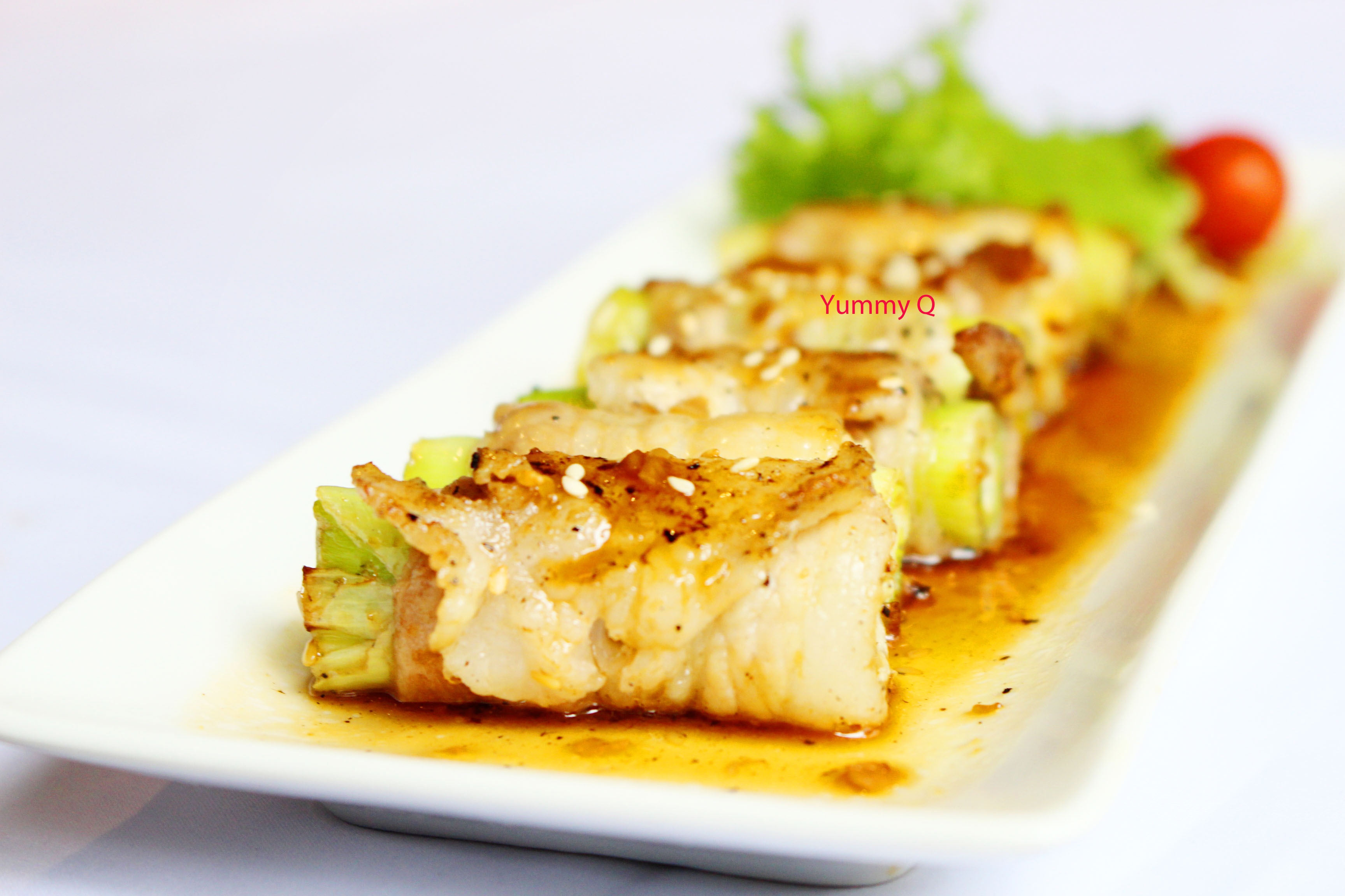 Rất ít người nghĩ đến việc chế biến món nấm kim châm nướng, càng ít người nghĩ đến việc cuộn nó trong những miếng thịt ba chỉ béo mềm rồi ướp chung với sốt terayaki và nướng lên. Vị ngon của nó sẽ khiến bạn bất ngờ. Các món có tại quán Yummy (đường Trương Định, Q.3, TP HCM, gần đường Ngô Thời Nhiệm).