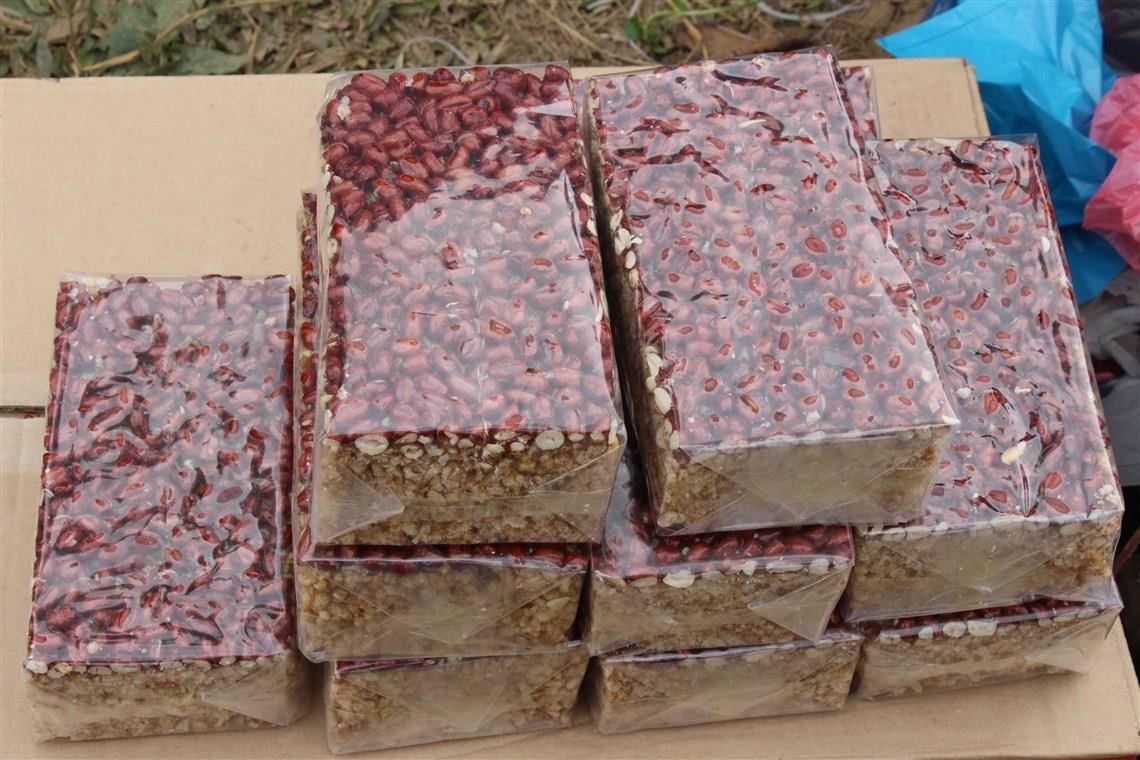 Bánh Khẩu Sli làm bằng gạo nếp, lạc, vừng và đường phên (đường cô đặc nguyên chất từ mật mía). Bánh thường được thưởng thức kèm nước trà xanh. Đây vốn là món ăn truyền thống trong dịp lễ, Tết cổ truyền của người Tày, Nùng tại Cao Bằng. Ngày nay, bánh còn được sản xuất với số lượng lớn để du khách thập phương mua làm quà. Ảnh: Vietravel. |