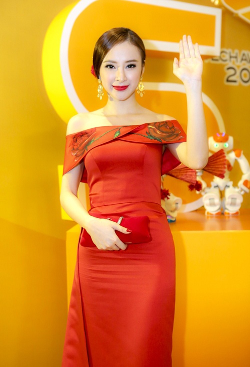 | Angela Phương Trinh duy trì phong độ hình ảnh trong thời gian qua. Khi tham dự một sự kiện trong tuần, nữ diễn viên Biết chết liền diện bộ đầm dạ hội tông màu đỏ thanh lịch, được nhấn nhá tại vai áo. Tông trang điểm đỏ đậm ăn nhập cùng phụ kiện, váy áo, tạo hình ảnh sang trọng. |