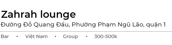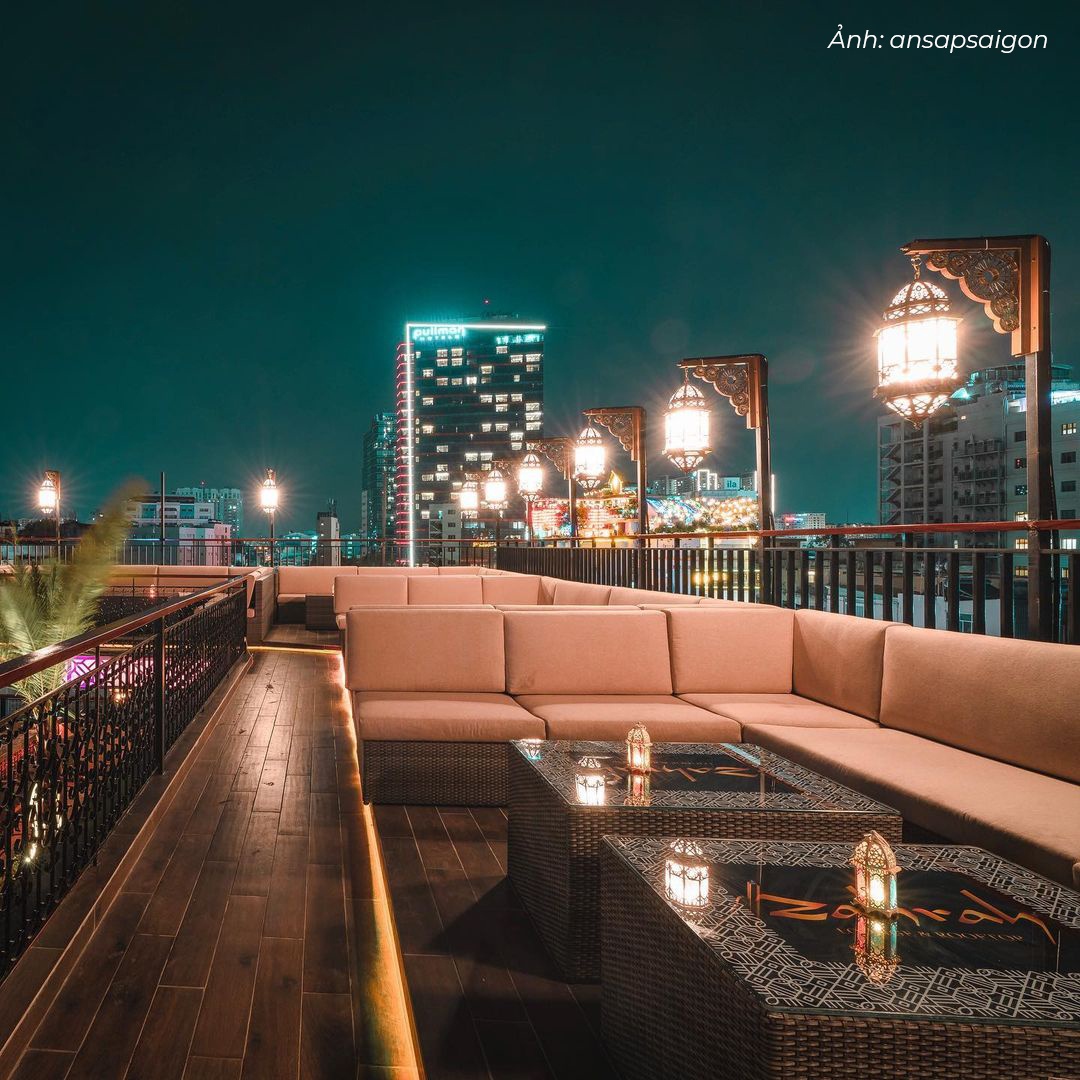 Quán bar này nằm trong khu phố Tây Bùi Viện nhộn nhịp, vị trí ngắm được tòa nhà Bitexco. Không gian Zahrah mang phong cách Morocco phóng khoáng, màu sắc.