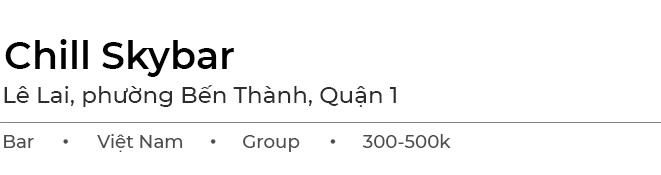 Có mặt tại trung tâm quận 1 đã lâu, Chill Bar là điểm đến quen thuộc cho du khách cần một không gian náo nhiệt để thưởng thức nhịp sống TP.HCM về đêm. Điểm nhấn của Chill này là quầy bar phát sáng ngoài trời, nơi có những bữa tiệc âm nhạc sôi động.