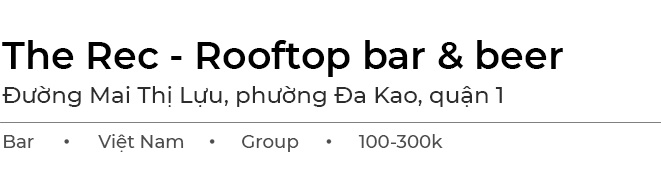Thực đơn cocktail ở The Rec đa dạng, giá dao động 80.000-200.000 đồng/ly. Nếu đến đây lần đầu và chưa biết gọi đồ uống nào, bạn có thể thử Blue Moon hoặc Fluffy Comet.