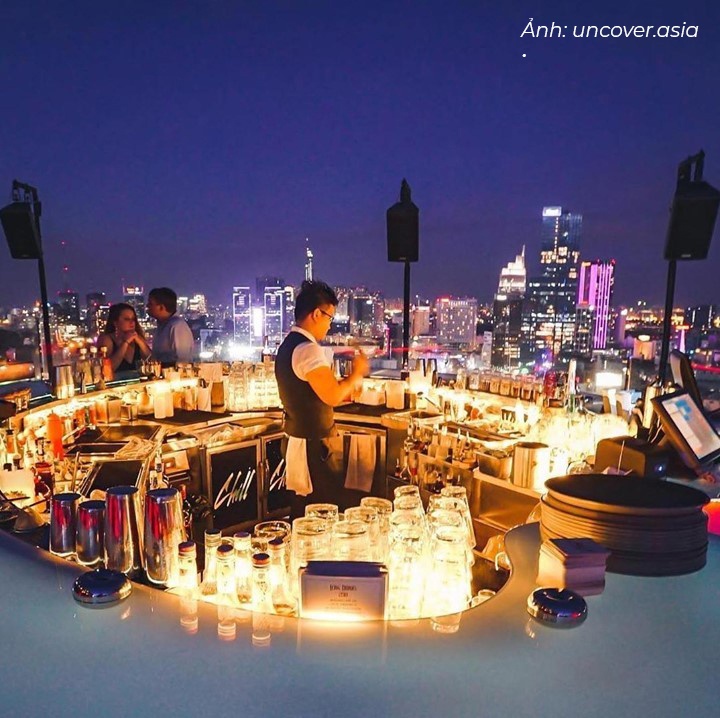 Cuối tuần chưa tìm được địa điểm gặp gỡ bạn bè, bạn có thể ghé 5 quán bar view tầng cao dưới đây để thưởng thức ly cocktail màu sắc và ngắm thành phố nhộn nhịp.