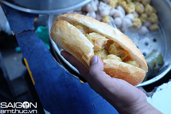 7. Há cảo trên đường Nguyễn Thị Minh Khai là nơi duy nhất kết hợp bánh mì với há cảo của Sài Gòn. Đi kèm phần nhân độc đáo là vị chua, ngọt của tương, giấm đỏ. Ngoài bánh mì há cảo, quán còn có há cảo, bánh xếp, bánh bao... Bán từ 5h30-10h30. Bánh mì xíu mại 17.000 đồng một ổ. Ảnh: Saigonamthuc.
