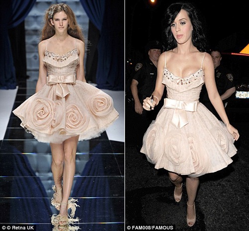 | Cũng trong năm 2010, cô bạn thân của Katy là Rihanna đã mượn bộ váy body màu be của Herve Leroux để mặc trong bữa tiệc sinh nhật. Tuy nhiên, theo người đại diện của Herve Leroux thì chiếc váy mà Rihanna trả lại đã trở thành màu nâu. “Tôi không biết cô ấy đã làm cái quái gì với cái váy đó” – người này tức giận nói. |