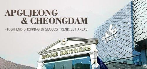 Apgujeong là một trong những khu mua sắm đắt đỏ hàng đầu Hàn Quốc, ở đây tập trung các nhãn hàng xa xỉ nhất thế giới như Louis Vuitton, Prada, Channel và những cửa hàng thời trang được trang trí độc đáo, lạ mắt.