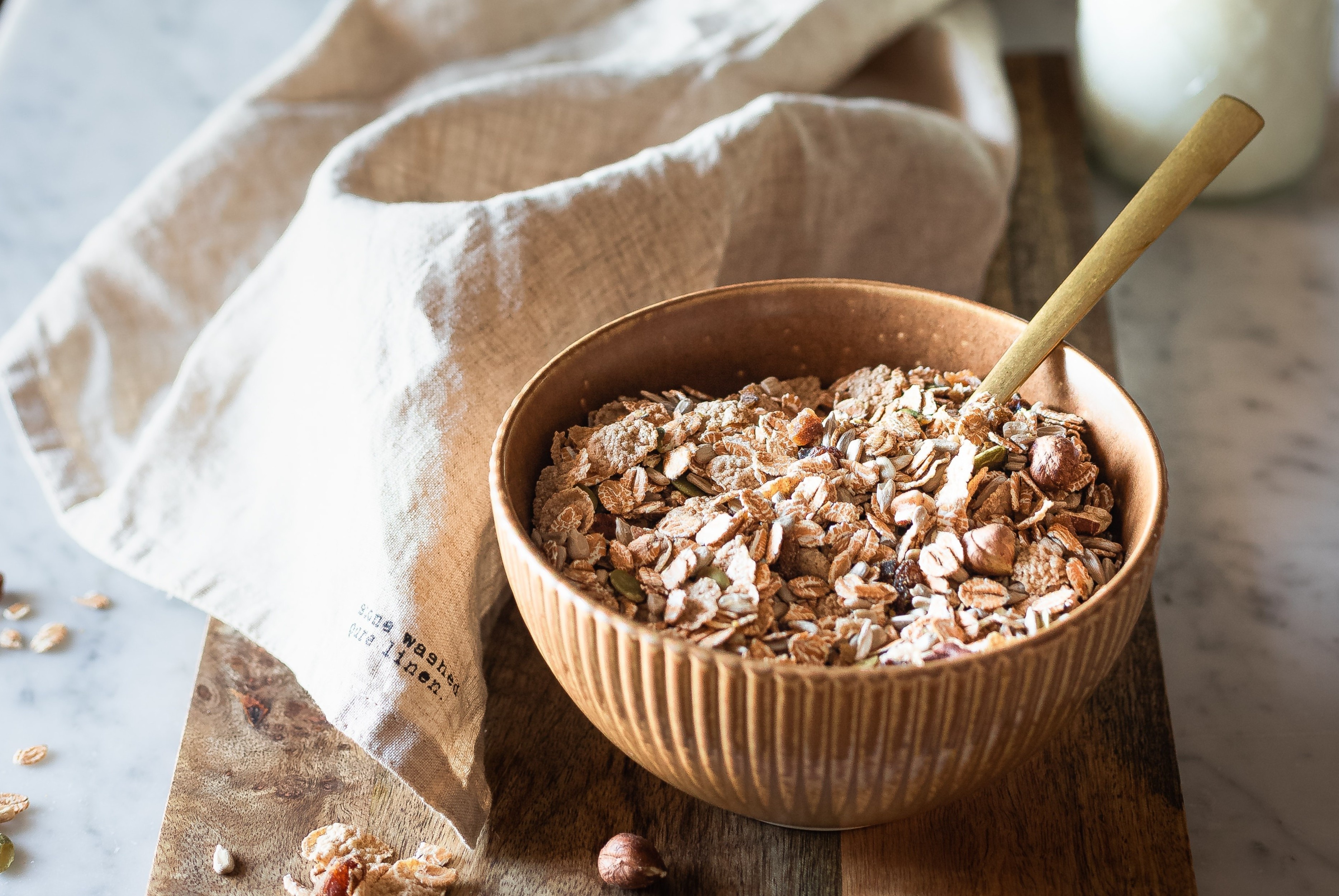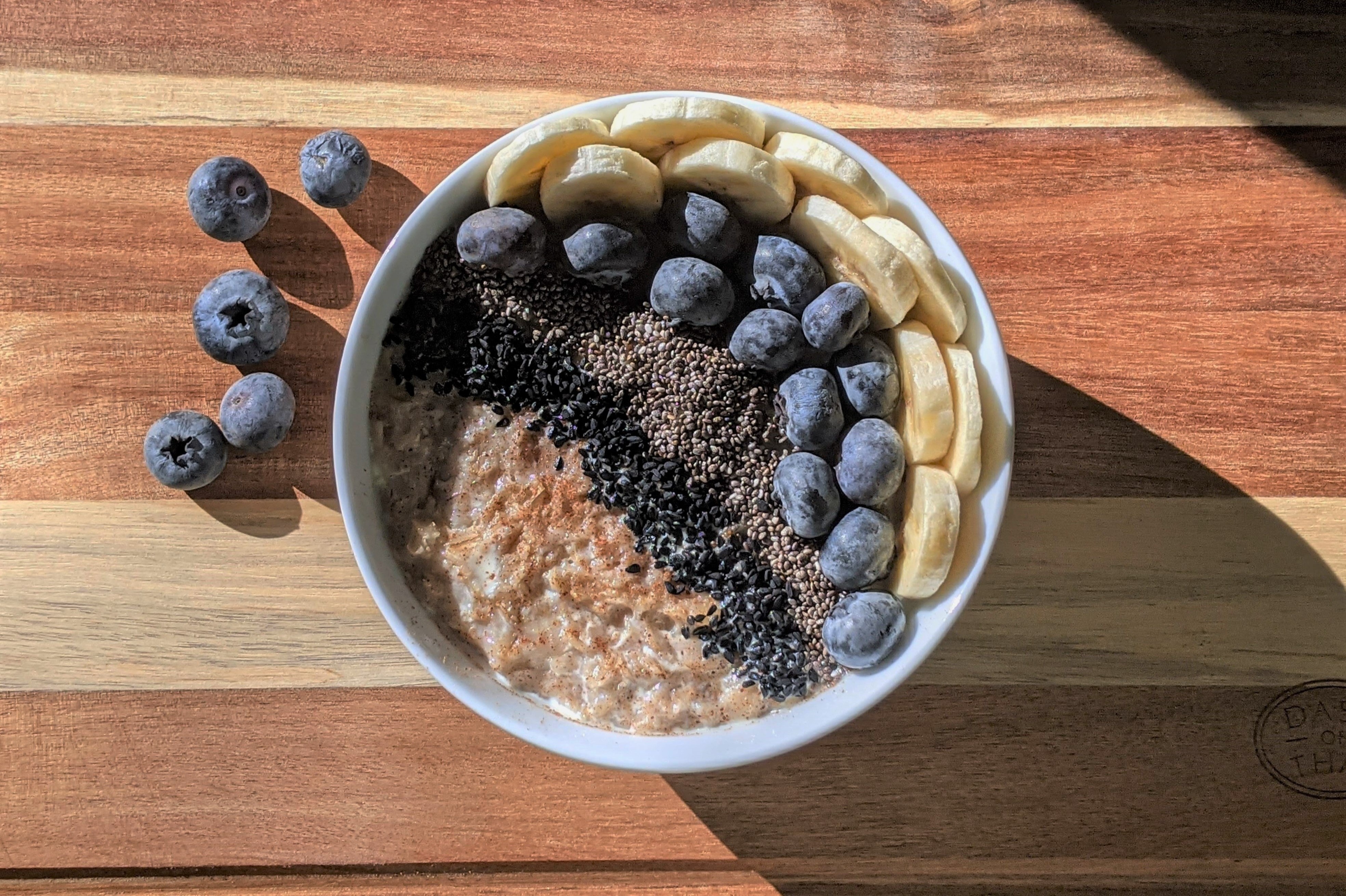 Hãy thử kết hợp một cốc 235 g yến mạch với 74 g quả mọng, 7 g hạt lanh xay và một nắm hạnh nhân để tạo ra bữa ăn sáng giàu chất xơ.
