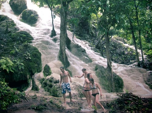 Thác Bua Tong với lượng canxi carbonate cao trong nước khiến những phiến đá nhám hơn, dễ bám trụ hơn và không trơn trượt như các vùng thác nước khác. Nhờ đó, du khách có thể leo lên thác nước dễ dàng và dừng chân ở một đồng cỏ trên đỉnh tháp để cắm trại, ăn uống.