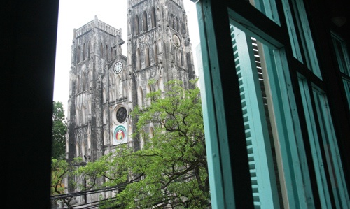 Ngồi cà phê ngắm mưa, nghe tiếng chuông nhà thờ: Hãy chọn bất cứ một quán cà phê ấm áp nào quanh nhà thờ, nhâm nhi một tách nâu nóng, đọc vài trang sách và thư thả ngắm nhìn đường phố vắng vẻ vang tiếng chuông nhà thờ trong trẻo, an lành. Ảnh: Bưu điện Việt Nam. |