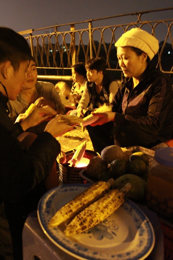 Nhâm nhi ngô nướng bên than hồng: Khi trời rét, hầu như con phố nào cũng có các hàng ngô nướng thơm lừng. Bắp ngô nếp dẻo được nướng chín trên than hoa, hạt giòn bên ngoài mà dẻo bên trong. Nhiều hàng còn có ngô luộc và nước ngô ngọt ấm phục vụ khách hàng. Ảnh: Phương Trần/Zing. |