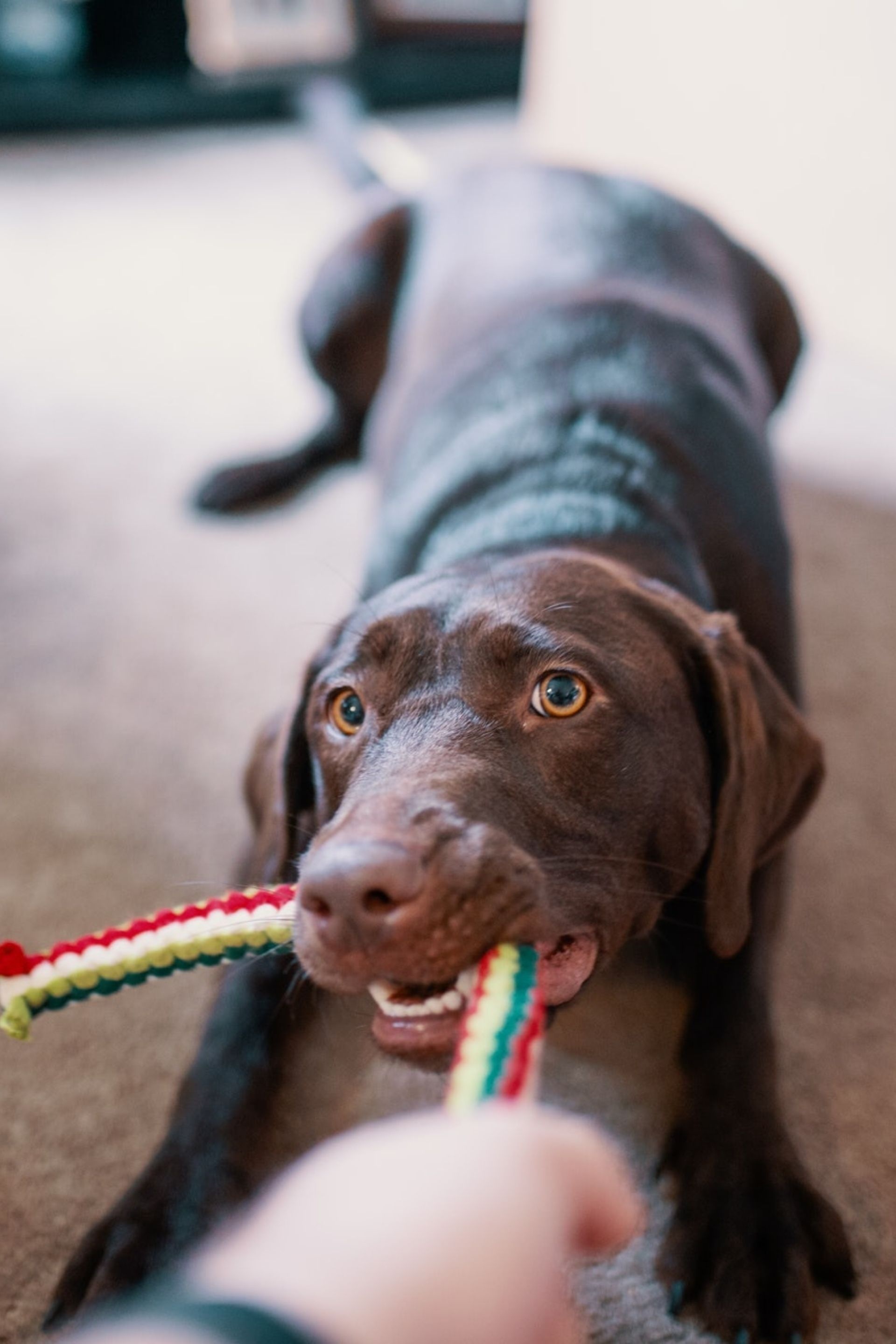 - Lấy một món đồ chơi bất kỳ của cún, ưu tiên dây thừng mềm.
