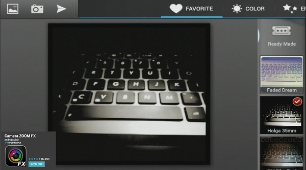 Khác với phần lớn các ứng dụng trong bản danh sách này, Camera Zoom FX dùng các bộ lọc và hiệu ứng theo một cách hoàn toàn khác. Thay vì cài đặt các bộ lọc có sẵn, Camera Zoom FX cho phép người dùng chọn hàng loạt hiệu ứng để tạo ra bộ lọc của riêng mình.