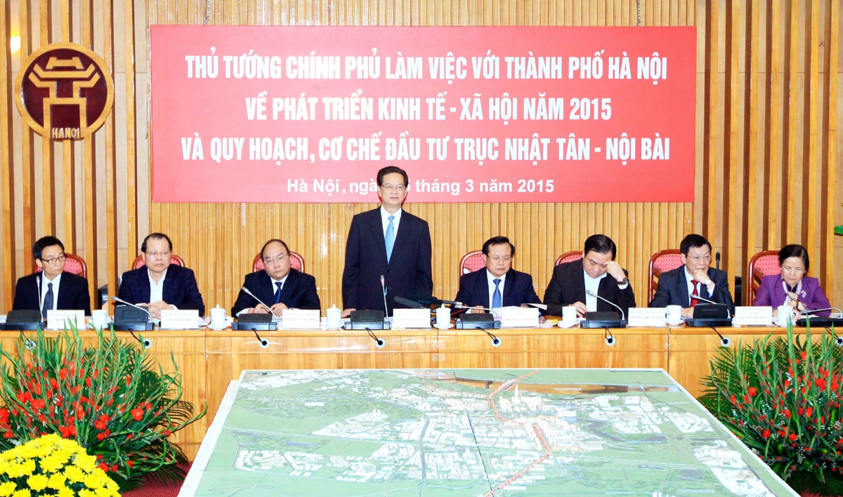 Thủ tướng Nguyễn Tấn Dũng thăm gian trưng bày của TP Hà Nội tại Triển lãm 70 năm thành tựu kinh tế - xã hội nhân kỷ niệm 70 năm Cách mạng Tháng Tám và Quốc khánh 2/9/2015.