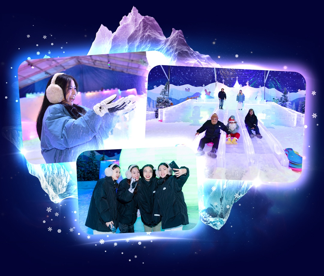 Tại đây, dốc trượt tuyết dài 60 mét, đường trượt băng hình số 8, Ngôi làng băng tuyết, khu vui chơi với Husky… luôn trong tình trạng “hết công suất” để đón dòng khách đông đúc đổ về vui chơi. Đặc biệt, không gian Giáng sinh tuyết trắng “Ice Magic” là nơi níu chân du khách với tác phẩm điêu khắc băng đầy tinh xảo.