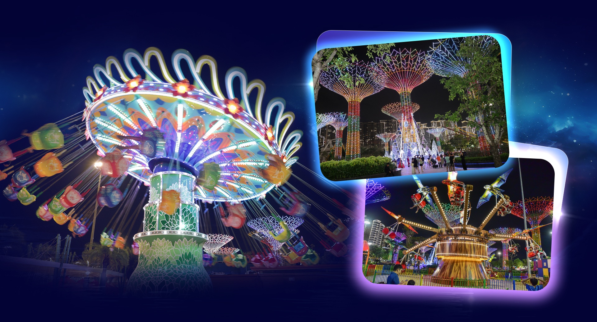 Trong đó, công viên chủ đề được thiết kế đa dạng phân khu. Nếu khu vực trò chơi có khoảng 10 trò chơi cảm giác mạnh cùng 20 gian hàng trò chơi dân gian có thưởng thì khu vực công viên nước mang đến tổ hợp đường trượt nước, thu hút những ai yêu thích mạo hiểm.