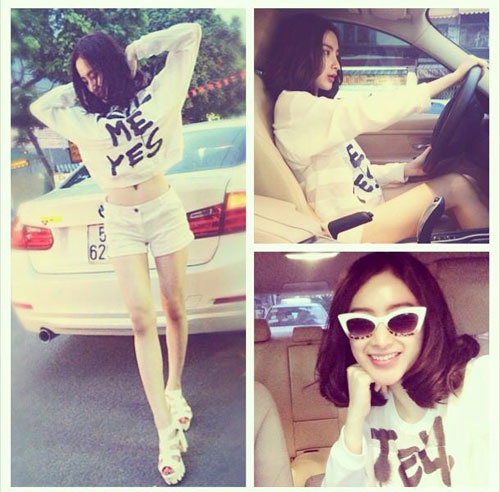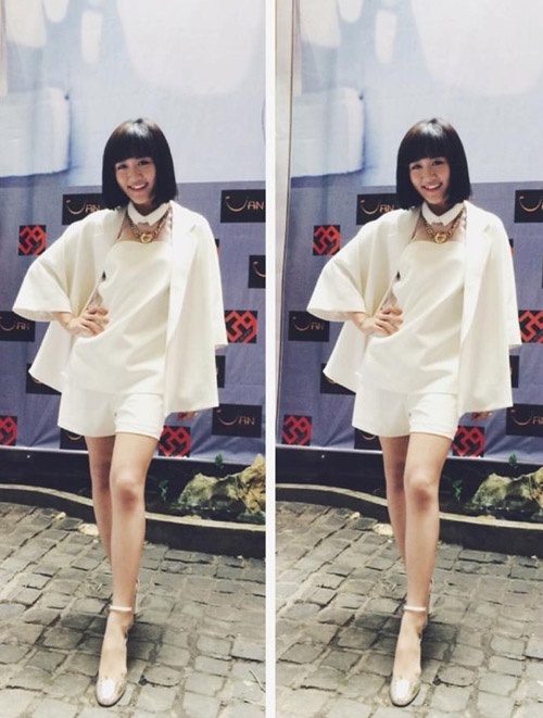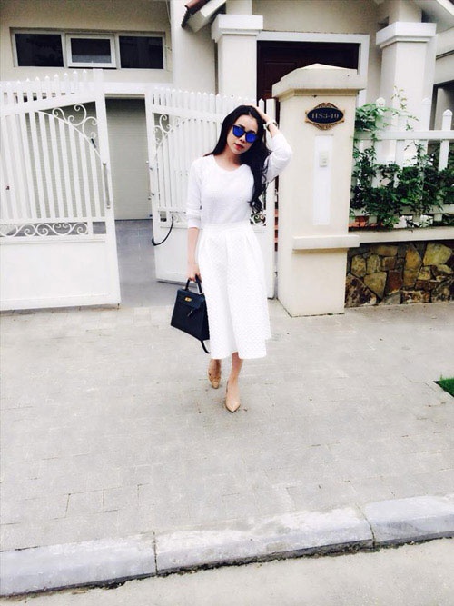 | Hà Tăng trẻ trung với cả cây trắng rất thanh lịch và đơn giản. |