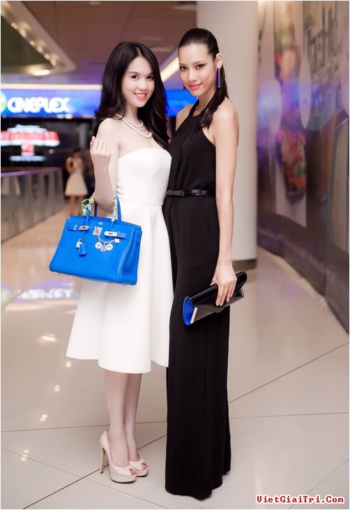 | Ngọc Trinh sử dụng tông trắng thu hút với các viền đẹp nẹp đối lập cho váy và áo. |