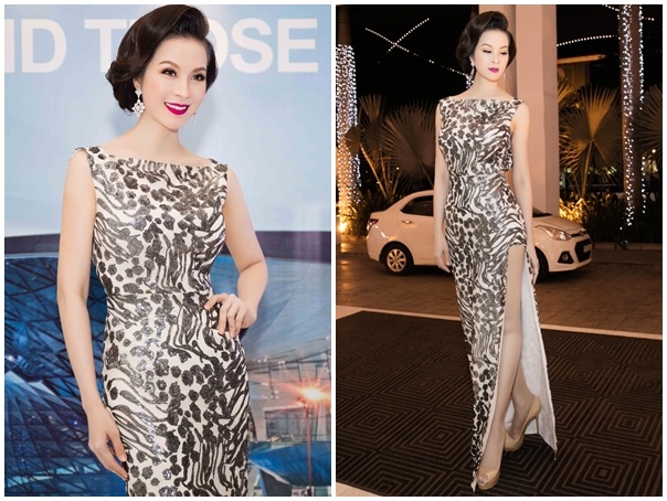 | MC Thanh Mai trở thành một trong sao nữ đẹp nhất tuần qua nhờ bộ váy ôm xẻ cao gợi cảm, họa tiết sành điệu. Nữ doanh nhân khéo chọn tông trang điểm đậm thu hút và kiểu tóc quý phái. Ảnh: Tiên Nguyễn |