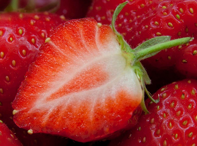 Dùng phần bên trong quả dâu tây để chà răng giúp bạn nhanh chóng loại bỏ được các vết bẩn bám trên bề mặt răng, làm răng trắng và sáng bóng.