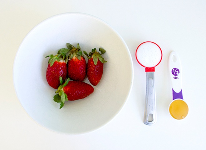 - Dâu tây, mật ong và bột mì. Nghiền nhỏ 2 quả dâu tây, thêm 1 thìa cà phê mật ong và 1 thìa cà phê bột mì rồi trộn đều hỗn hợp. Rửa sạch mặt, lau khô và đắp hỗn hợp lên mặt trong 15 phút rồi rửa sạch bằng nước ấm. Trong khi dâu tây giúp thanh lọc độc tố, vitamin C khôi phục độ sáng bóng cho da thì mật ong lại có tác dụng kháng khuẩn tốt, bột mì hút ẩm giúp làn da dầu trở nên sạch và sáng bóng hơn.
