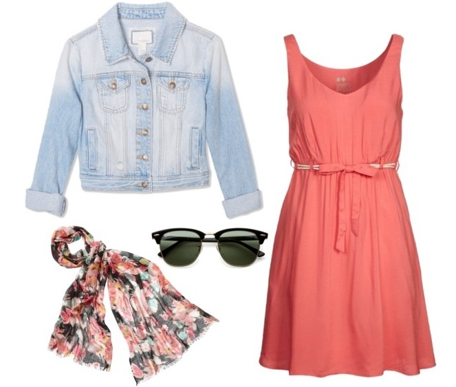 | Việc kết hợp đầm suông đơn sắc với khăn voan choàng cổ, kính mát và áo khoác denim sẽ mang lại sự dịu dàng, nữ tính cho bạn. |
