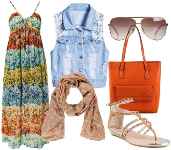 | Váy maxi hai dây, khăn voan mỏng, sandals chính là trang phục giúp bạn gái khoe trọn được nét nữ tính và sự gợi cảm của đôi vai trần. Khoác bên ngoài chiếc áo khoác jeans không tay giúp bạn ấm áp, nhưng không mất đi sự quyến rũ vốn có.  |