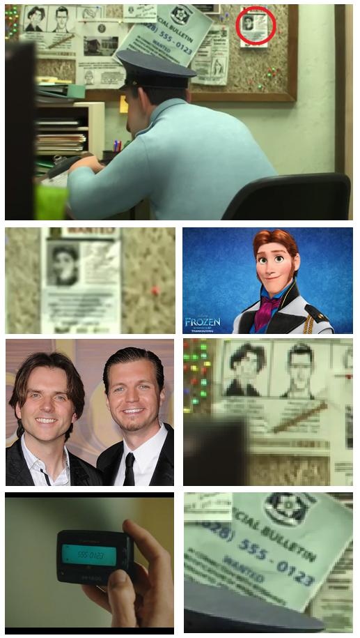 Chưa hết, hai bức ảnh còn lại là chân dung của Nathan Greno và Byron Howard, bộ đôi đạo diễn và biên kịch của tác phẩm hoạt hình đình đám khác đến từ Disney là Tangled - Công chúa tóc mây. Dãy số trên tường và ở chiếc máy nhắn tin là số điện thoại của “Chúa trời”, nhân vật từng do Morgan Freeman thể hiện trong bộ phim hài Bruce Almighty.