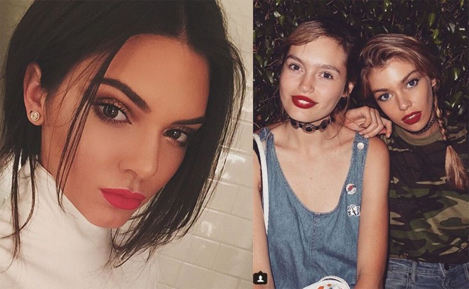| 3. Son môi đỏ đậm. Người đẹp được săn đón nhất các fashion week, Kendall Jenner, đang tỏ ra "say đắm" màu son đỏ đậm. Hàng loạt mỹ nhân đình đám khác như thiên thần nội y Stella Maxwell, Soo Joo… đều không đứng ngoài xu hướng màu son cực sắc sảo, sexy này. |
