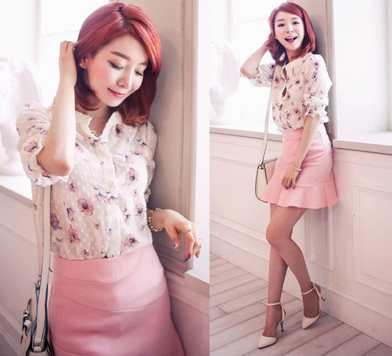 | Bên cạnh váy liền thân, chân váy phối hợp với áo sơ mi cách điệu in họa tiết hoa nhã nhặn cũng sẽ là set đồ cực xinh yêu giúp chủ nhân tỏa sáng. |