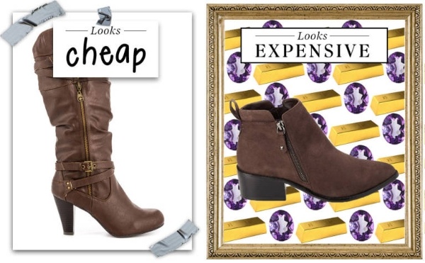 Giày giả da luôn tạo cảm giác kém sang và chúng cũng nhanh xuống cấp với những vết nổ, bề mặt phồng rộp, nhăn nhúm... Vì thế, hãy cân nhắc thật kỹ trước khi mua một đôi giày giả da. Trong khi đó, giày da lộn trông sẽ cao cấp hơn nhiều. Chúng cũng bền đẹp hơn, đồng thời dễ dàng vệ sinh hơn.