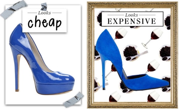 Giày giả da bóng khá đẹp với các màu sắc như đen, trắng và nâu, nhưng nếu chuyển sang xanh cobalt, hồng hay đỏ chúng sẽ nhanh chóng tạo cảm giác rẻ tiền vì độ bóng thua xa hàng thật. Vì thế, tốt nhất hãy chọn chất liệu da lộn, nếu là da lộn giả nó vẫn dễ trông giống hàng thật hơn. Còn giày giả da thì thật khó để trông như hàng thật.