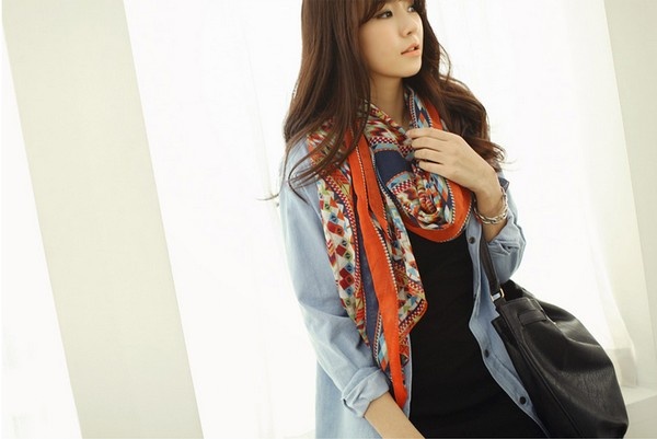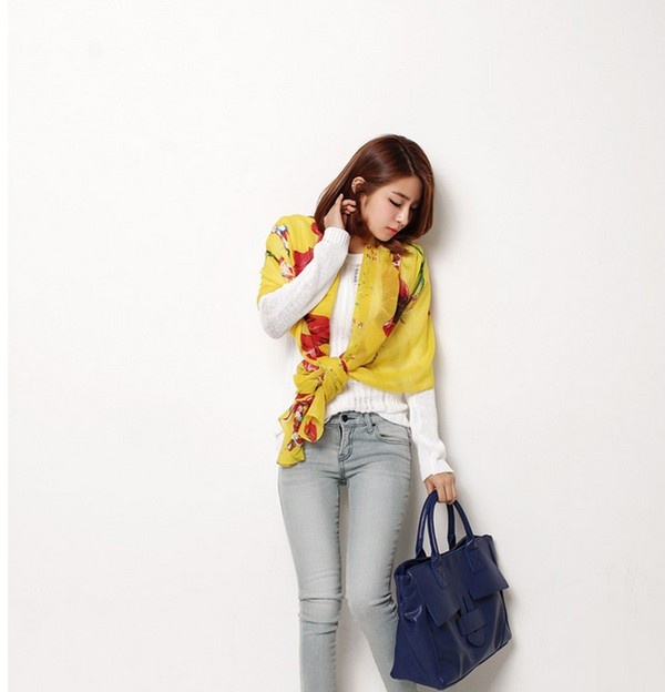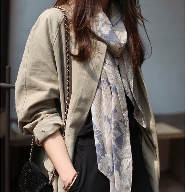 Những chiếc khăn lụa mỏng in họa tiết bắt mắt chính là món đầu tiên và không thể thiếu cho phái đẹp trong những ngày gió mùa. Ngoài công dụng giữ ấm hợp mùa, chiếc khăn này còn có thể kết đôi hoàn hảo và trở thành điểm nhấn cho trang phục vốn kiệm màu sắc của các quý cô văn phòng.