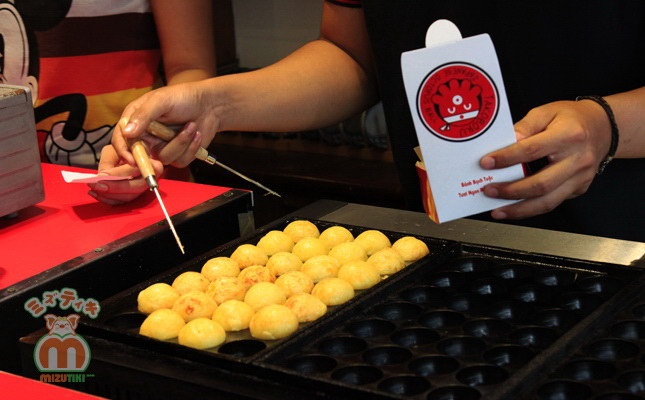 Bánh bạch tuộc takoyki: Takoyaki là loại bánh tròn nổi tiếng ở Osaka, và là bánh truyền thống của Nhật Bản trong các dịp lễ hội. Bánh có nhân bên trong là mực và bạch tuộc, bên ngoài là bột truyền thống của Nhật Bản. Bạn có thể thưởng thức món bánh này tại các quán ăn kinh doanh món Nhật với giá 4-5.000 đồng/viên. Ảnh: Mizutiki |