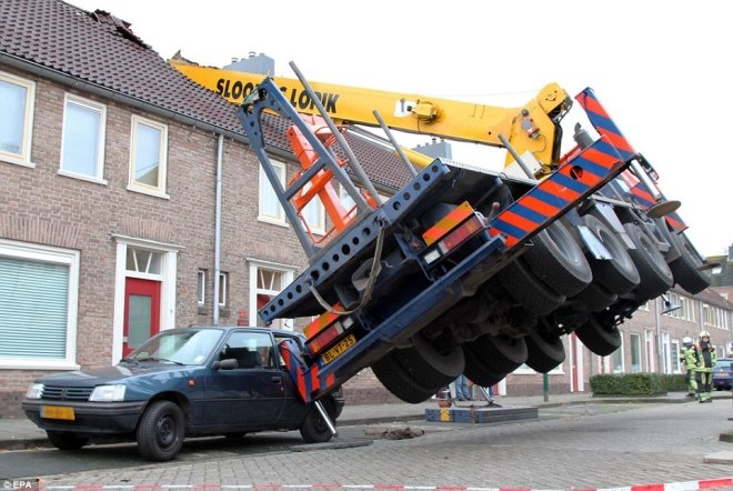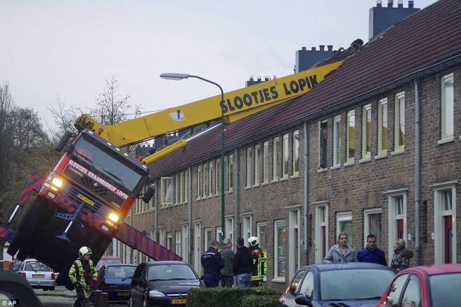Sập nhà vì thuê cần cẩu cầu hôn: Theo Daily Mail, một chàng trai sống ở IJsselstein (Hà Lan) đã lên kế hoạch cầu hôn bạn gái thật đặc biệt. Anh đã thuê một chiếc cần cẩu nhằm đưa anh lên cửa sổ nhà người yêu và nói những lời lãng mạn. (Ảnh: Daily Mail)